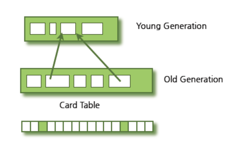 카드 테이블에는 Old 영역에 있는 객체가 Young 영역의 객체를 참조할 때 마다 그에 대한 정보가 표시 됩니다.