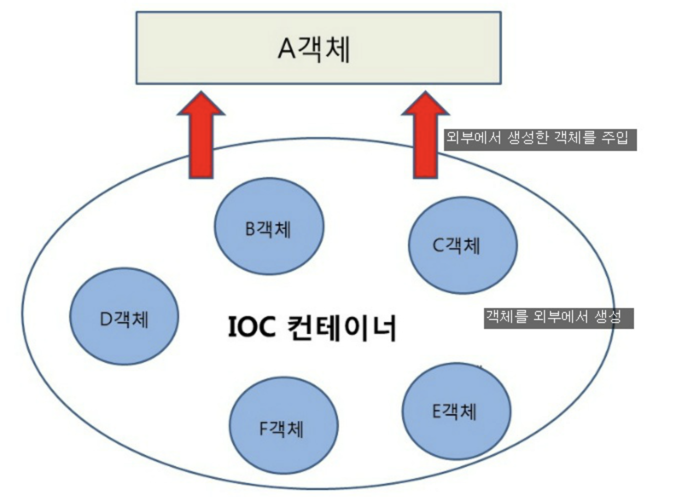 의존성 주입은 말 그대로 의존적인 객체를 직접 생성하거나 제어하는 것이 아니라, 특정 객체에 필요한 객체를 외부에서 결정해서 연결 시키는 것 을 의미합니다.
