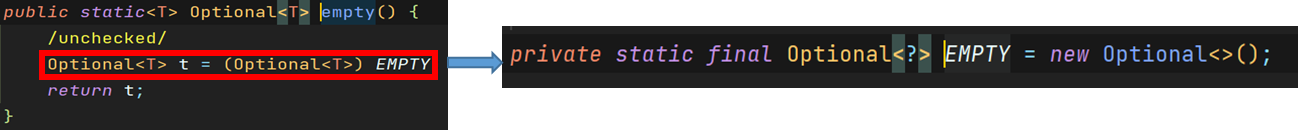 비어있는 옵셔널 객체를 생성합니다. 조건에 따라 분기를 태워야하고 반환할 값이 없는 경우에도 사용됩니다.